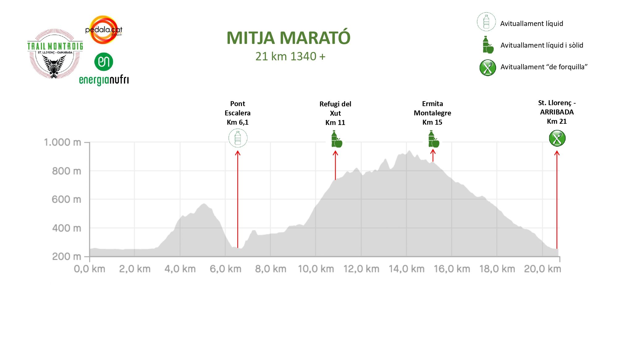 Recorregut exigent de 21km i 1.350md+ de pura adrenalina, tècnic alhora que divertit. Una mitja per gaudir-la sense límit de temps. El recorregut transcorre per llocs com el Tossal de Monteró amb el seu mític pas de l’Orellut, la pujada del Buho, la entretinguda carena del Mont-roig i la ràpida baixada per l’Isard.